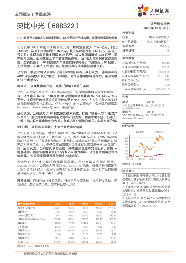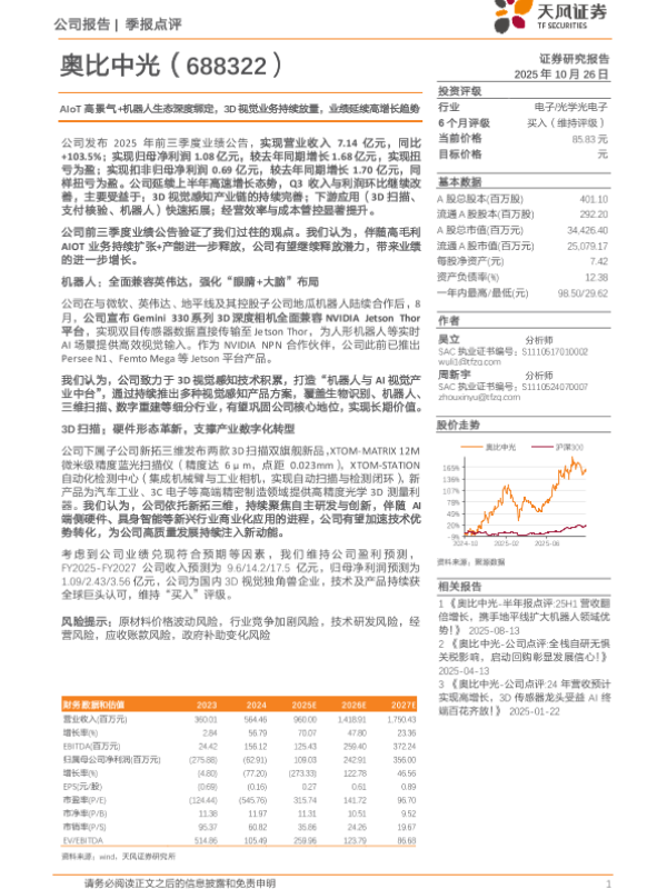 【天风证券】【202510】AIoT高景气+机器人生态深度绑定,3D视觉业务持续放量,业绩延续高增长趋势-3页