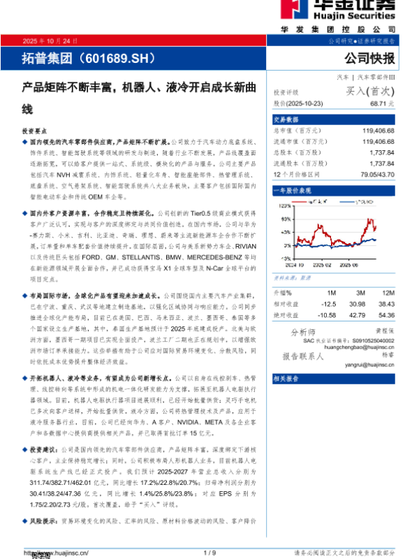 全球化布局 机器人 新能源车企 液冷技术 汽车零部件