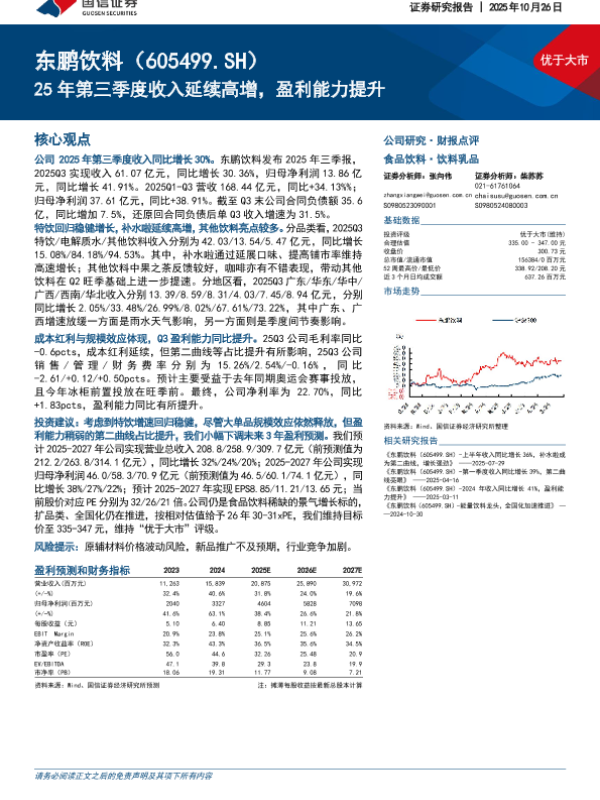 投资评级 饮料行业 能量饮料 财报分析 盈利能力