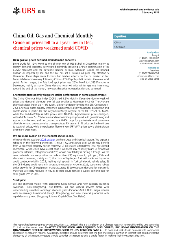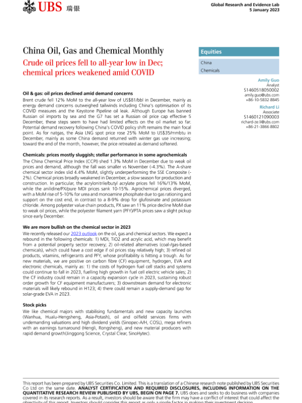 【UBS Securities Co. Limited】【20230105】China Oil, Gas and Chemical Monthly-14页