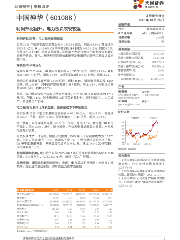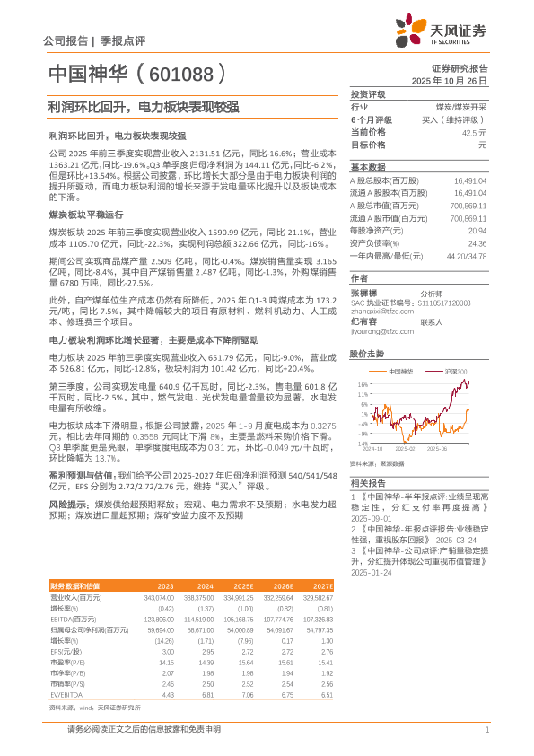 【天风证券】【202510】中国神华-季报点评 业绩呈现高稳定性,分红支付率再度提高-3页
