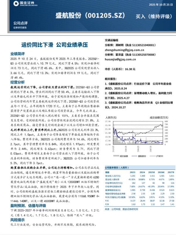 【国金证券】【202510】运价同比下滑 公司业绩承压-4页