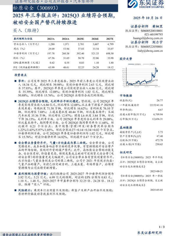 【东吴证券】【202510】2025年三季报点评:2025Q3业绩符合预期,被动安全国产替代持续推进-3页