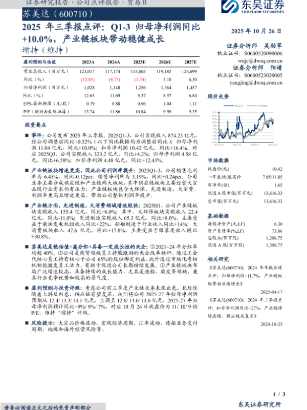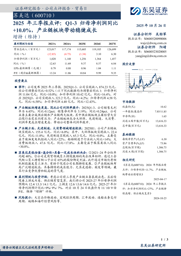 【东吴证券】【202510】2025年三季报点评:Q1-3归母净利润同比 +10.0%,产业链板块带动稳健成长-3页