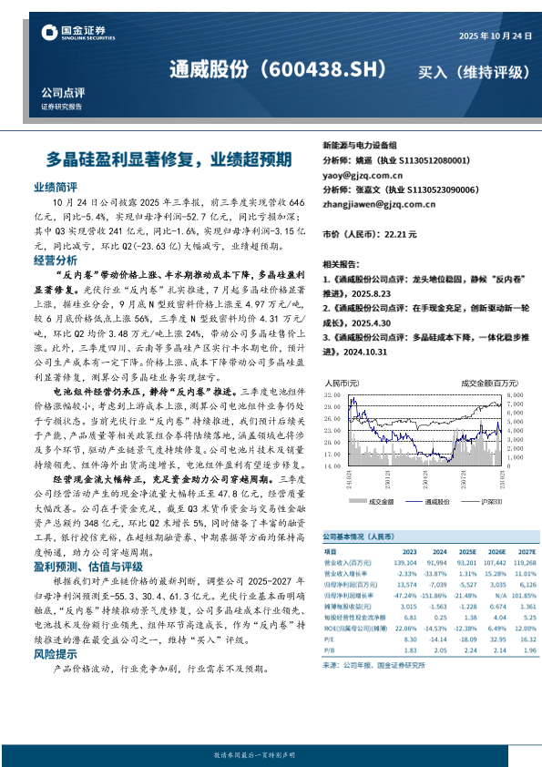 【国金证券】【202510】多晶硅盈利显著修复,业绩超预期-4页