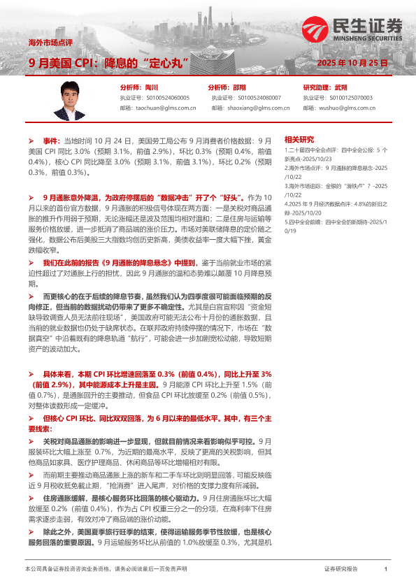 【民生证券】【202510】9月美国CPI:降息的“定心丸”-7页