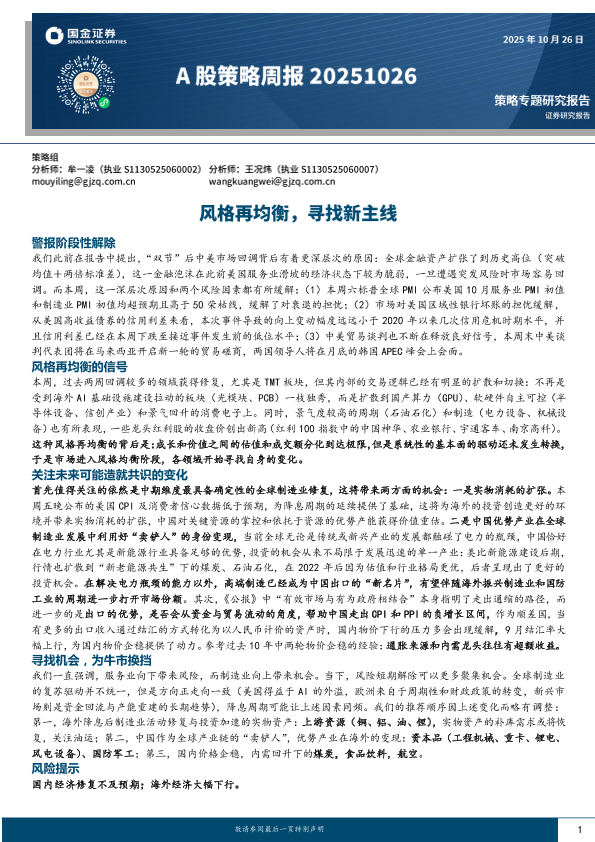 【国金证券】【202510】A股策略周报:风格再均衡,寻找新主线-9页