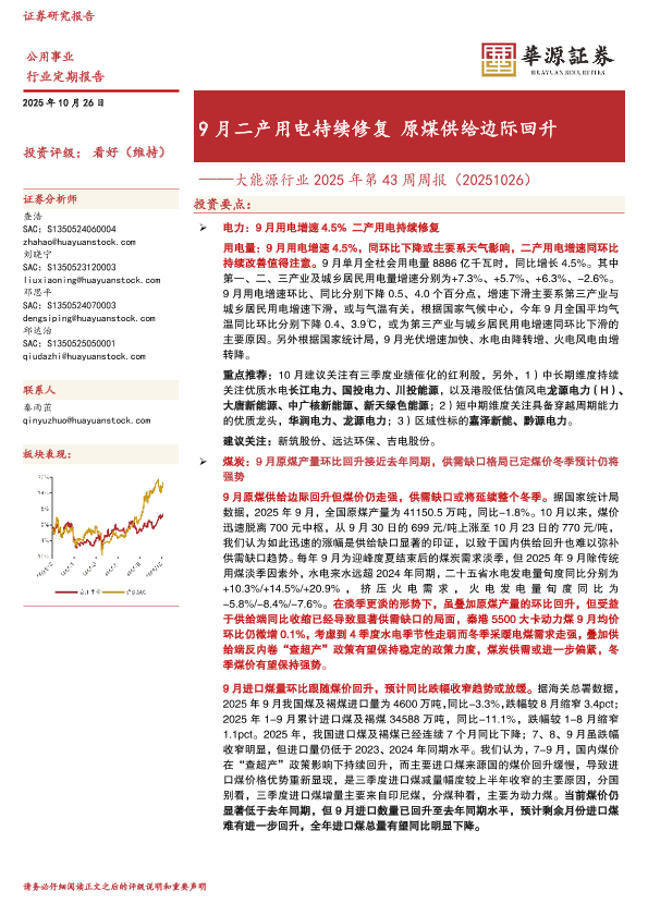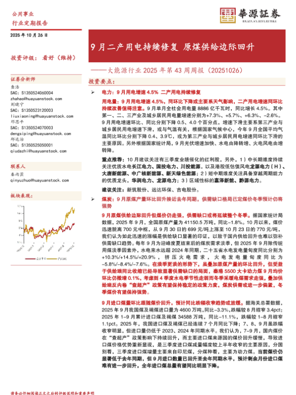 【华源证券】【202510】9月二产用电持续修复原煤供给边际回升-17页