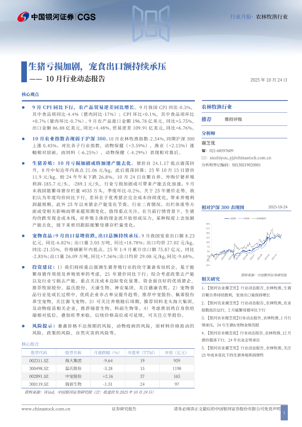【银河证券】【202510】生猪亏损加剧,宠食出口额持续承压——10月行业动态报告-21页