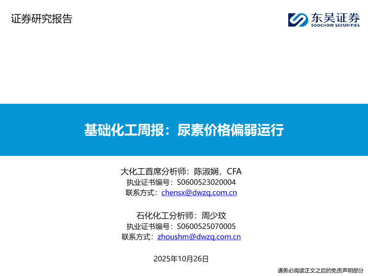 【东吴证券】【2025】基础化工周报:尿素价格偏弱运行-19页