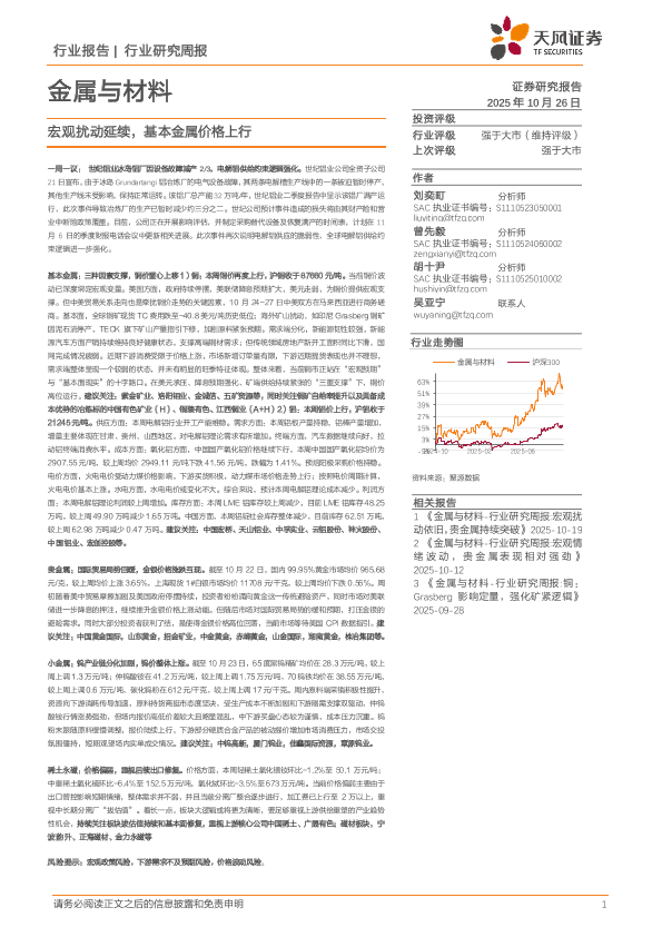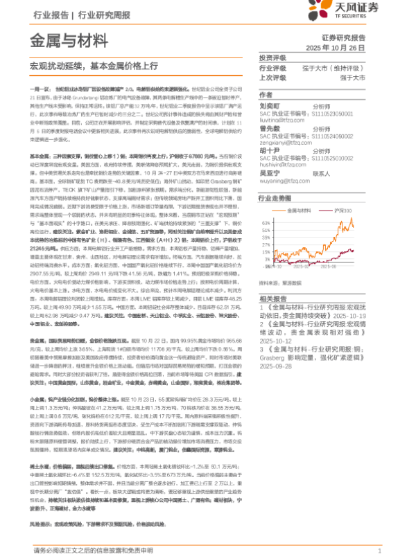 【天风证券】【202510】金属与材料行业研究周报:宏观扰动延续,基本金属价格上行-17页