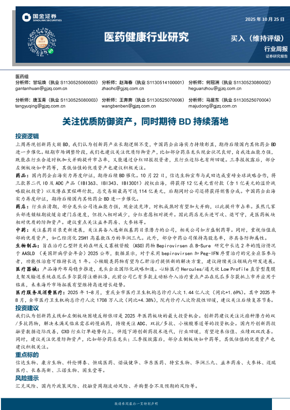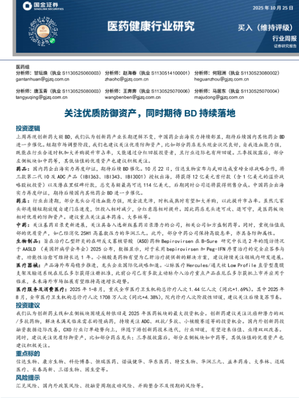 【国金证券】【202510】关注优质防御资产,同时期待BD持续落地-20页