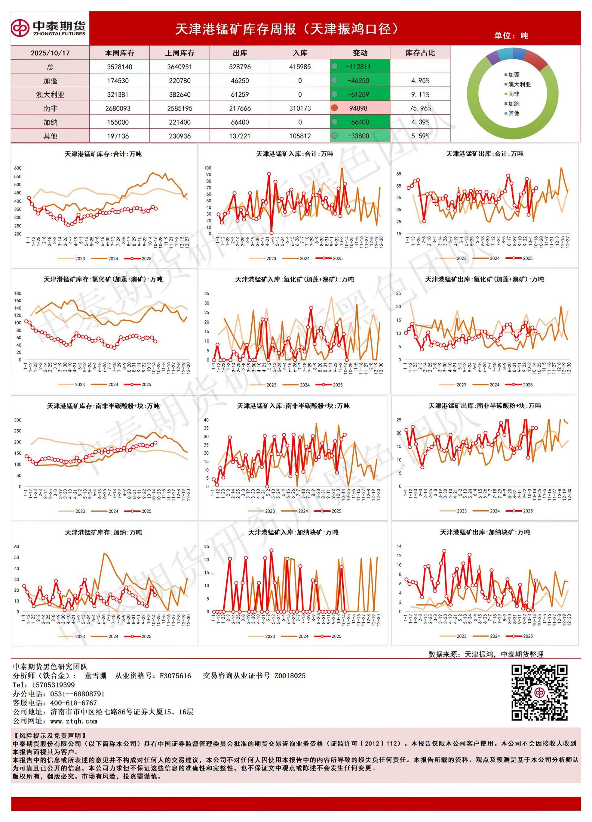 【中泰期货】【202510】20251017-中泰期货-天津港锰矿库存周报(天津振鸿口径)-1页