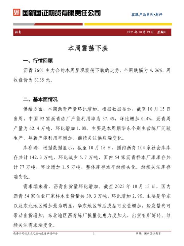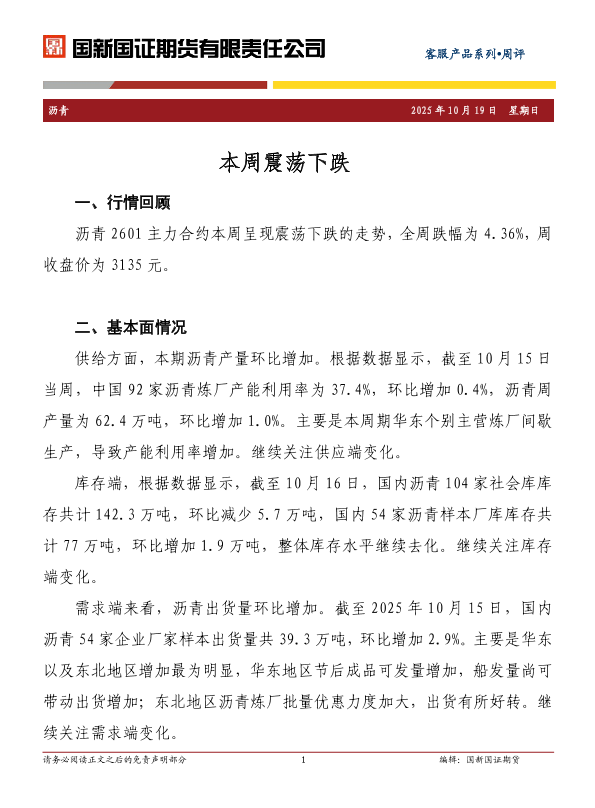 【国新国证期货】【202510】沥青周评_本周震荡下跌-2页