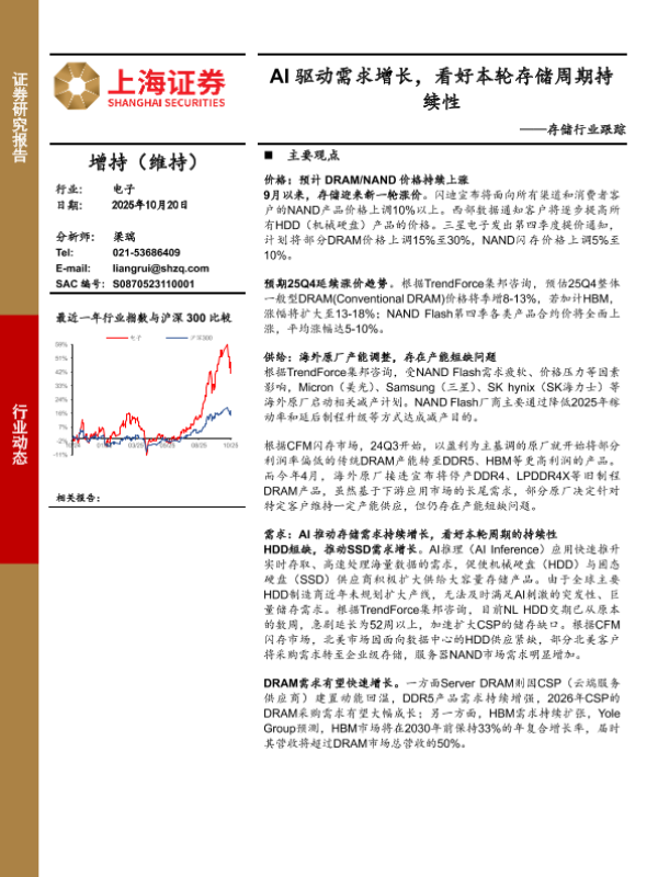 【上海证券】【202510】AI驱动需求增长,看好本轮存储周期持续性-3页