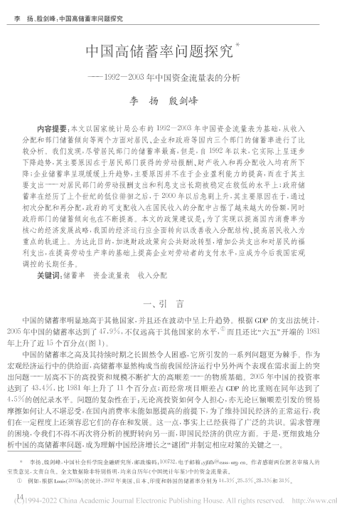 【国家金融与发展实验室】【20070101】中国高储蓄率问题探究———1992—2003年中国资金流量表的分析-13页