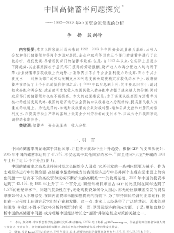 储蓄率 宏观经济 收入分配 政策建议 资金流量表