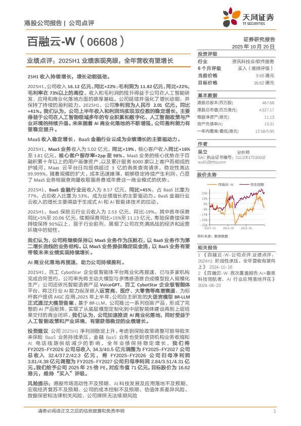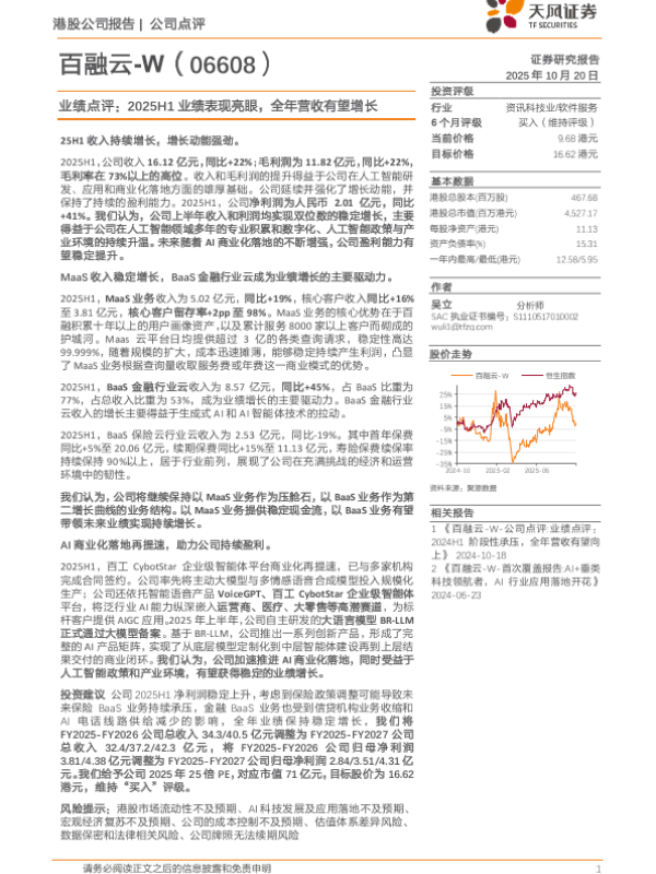 【天风证券】【202510】百融云-W-公司点评 业绩点评: 2025H1阶段性承压,全年营收有望向上-2页