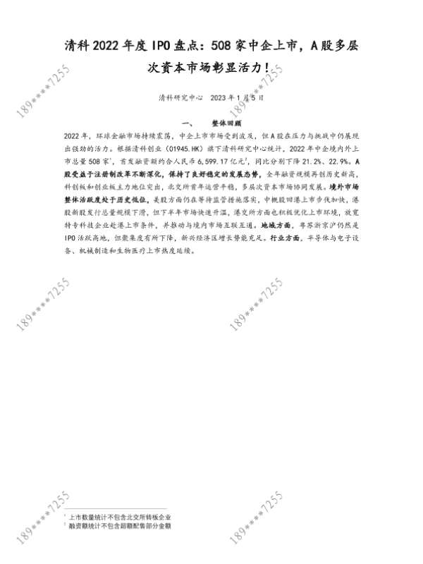 【清科研究中心】【20230105】2022年度IPO盘点:508家中企上市,A股多层次资本市场彰显活力!-9页