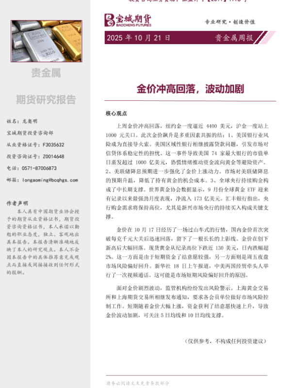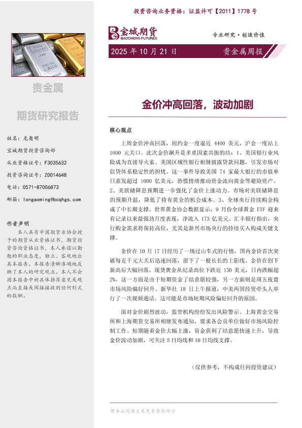 【宝城期货】【202510】贵金属周报_金价冲高回落_波动加剧-9页
