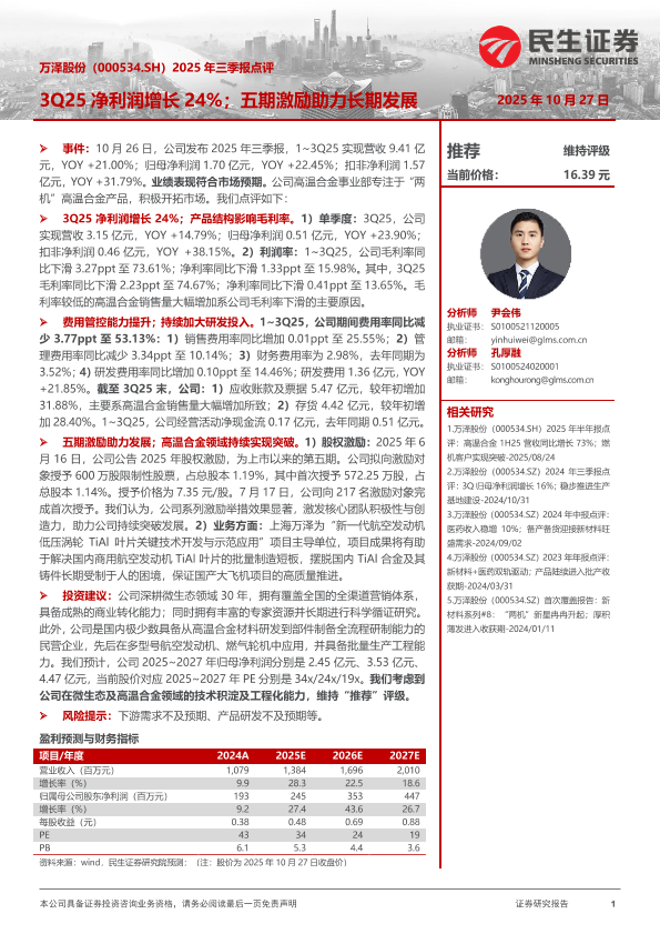 【民生证券】【202510】2025年三季报点评:3Q25净利润增长24%;五期激励助力长期发展-3页