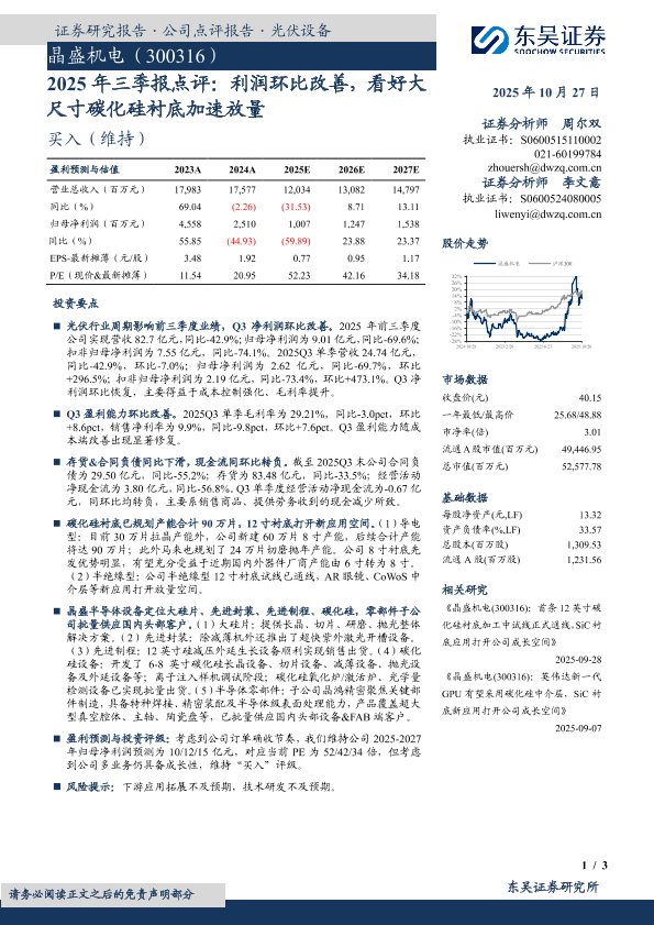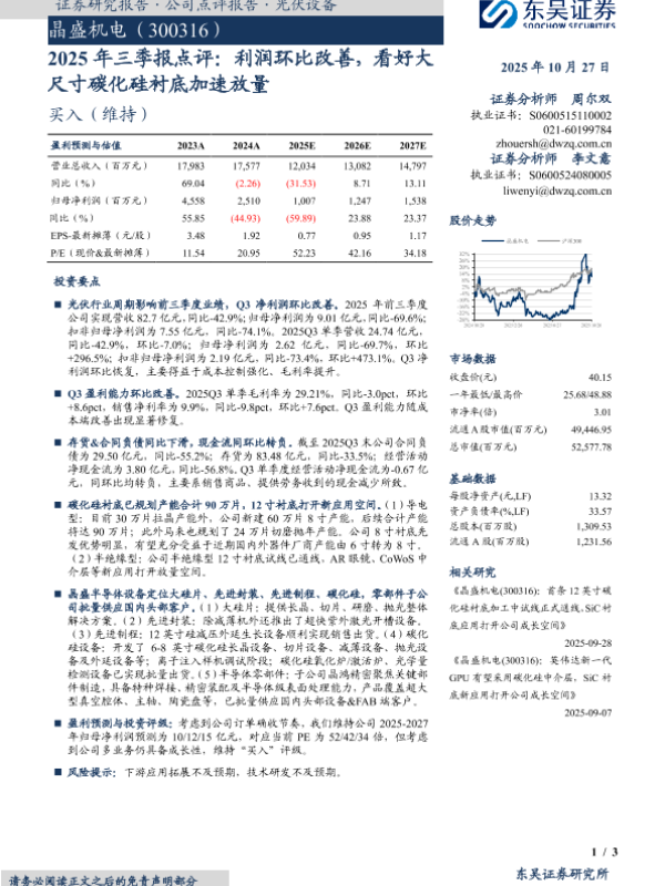 【东吴证券】【202510】2025年三季报点评:利润环比改善,看好大尺寸碳化硅衬底加速放量-3页