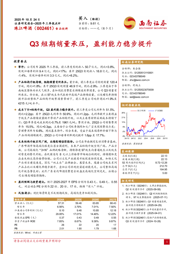 【西南证券】【2025】珠江啤酒(002461):2025年三季报点评-5页