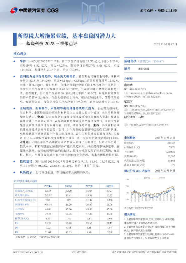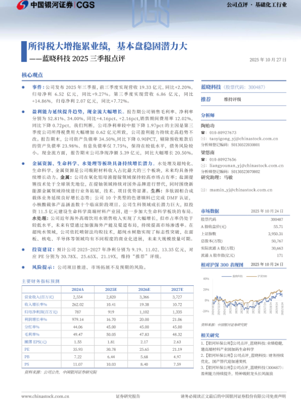 【银河证券】【202510】所得税大增拖累业绩,基本盘稳固潜力大——蓝晓科技2025三季报点评-3页