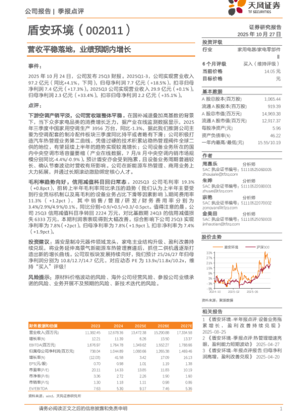 【天风证券】【202510】盾安环境-季报点评 热管理增速亮眼,盈利能力短期波动-3页