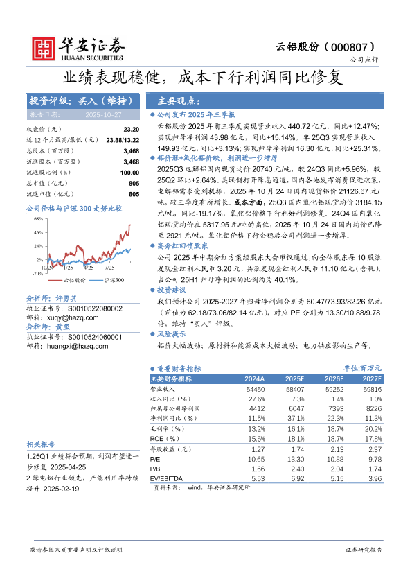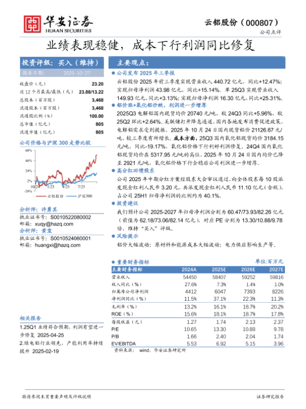 【华安证券】【202510】业绩表现稳健,成本下行利润同比修复-3页