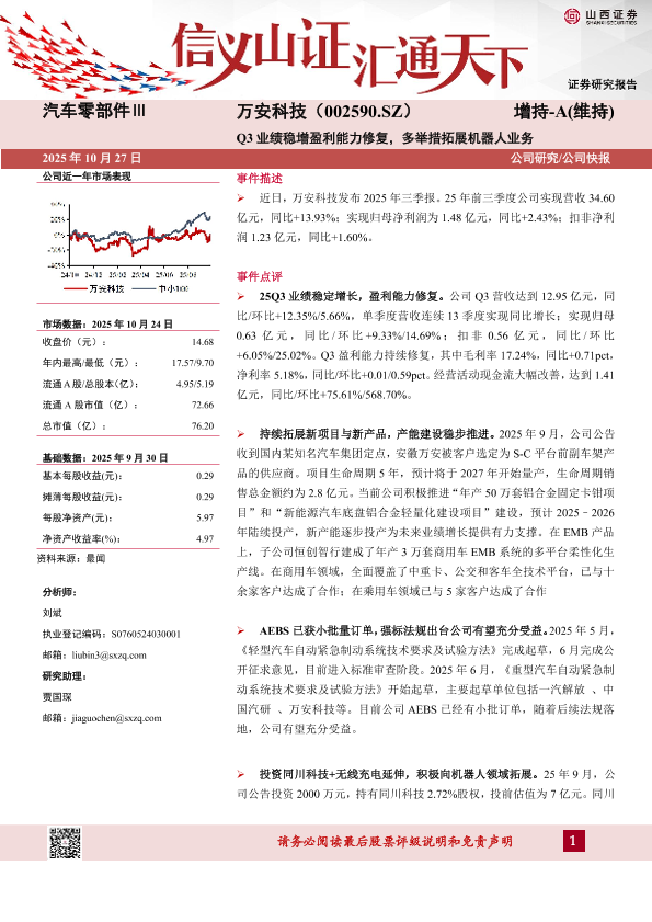 【山西证券】【202510】Q3业绩稳增盈利能力修复,多举措拓展机器人业务-5页