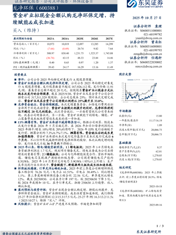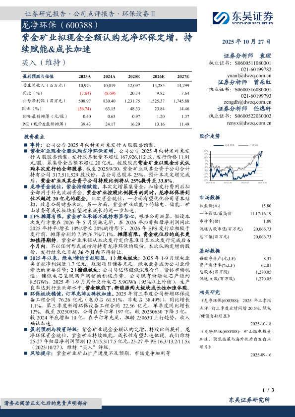 【东吴证券】【202510】紫金矿业拟现金全额认购龙净环保定增,持续赋能&成长加速-3页