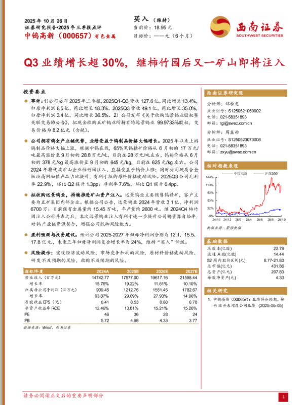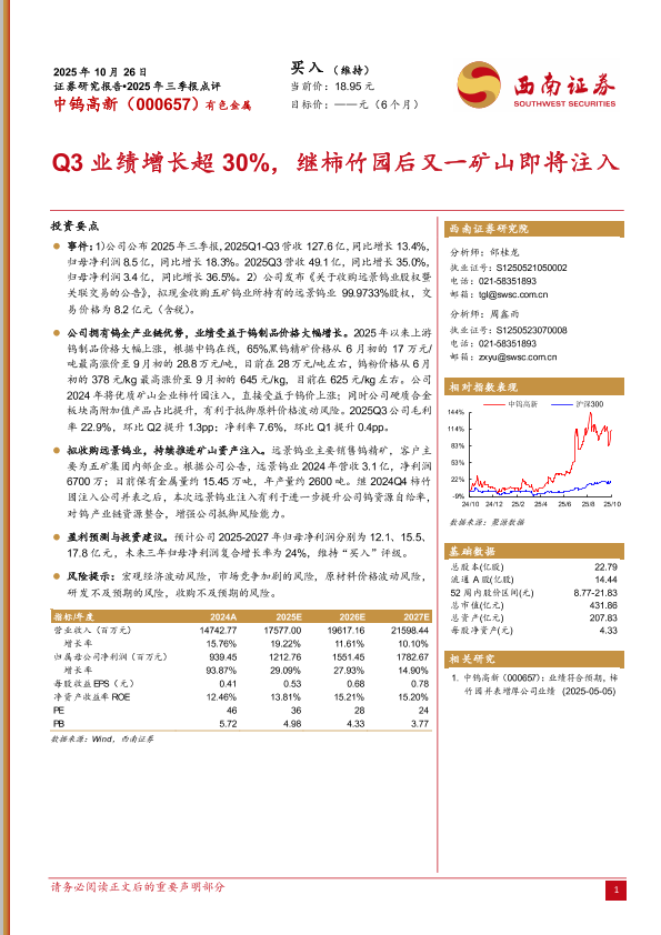 【西南证券】【202510】2025年三季报点评:Q3业绩增长超30%,继柿竹园后又一矿山即将注入-5页