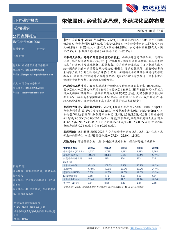 【信达证券】【202510】依依股份:经营拐点显现,外延深化品牌布局-4页