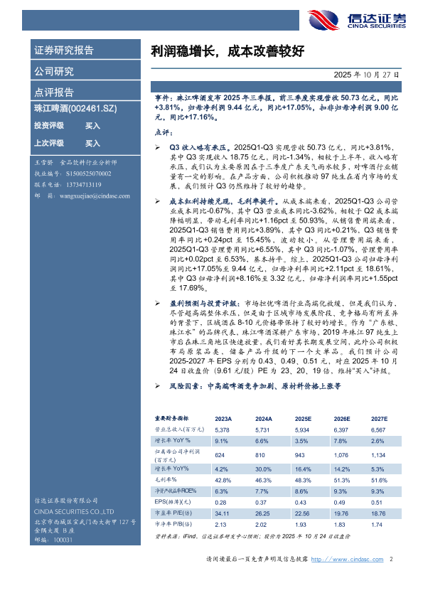 投资评级 毛利率 成本控制 盈利预测 啤酒行业