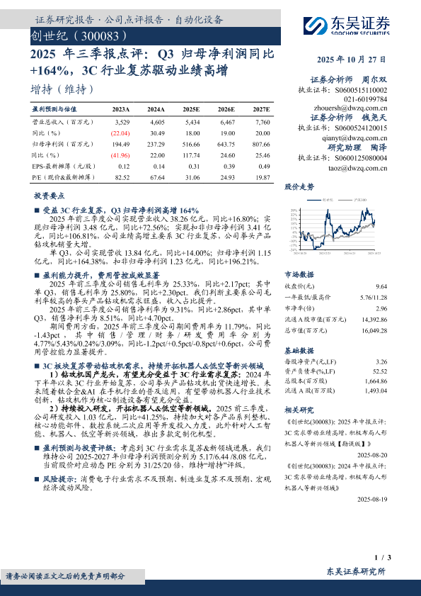 【东吴证券】【202510】2025年三季报点评: Q3归母净利润同比 +164%,3C行业复苏驱动业绩高增-3页