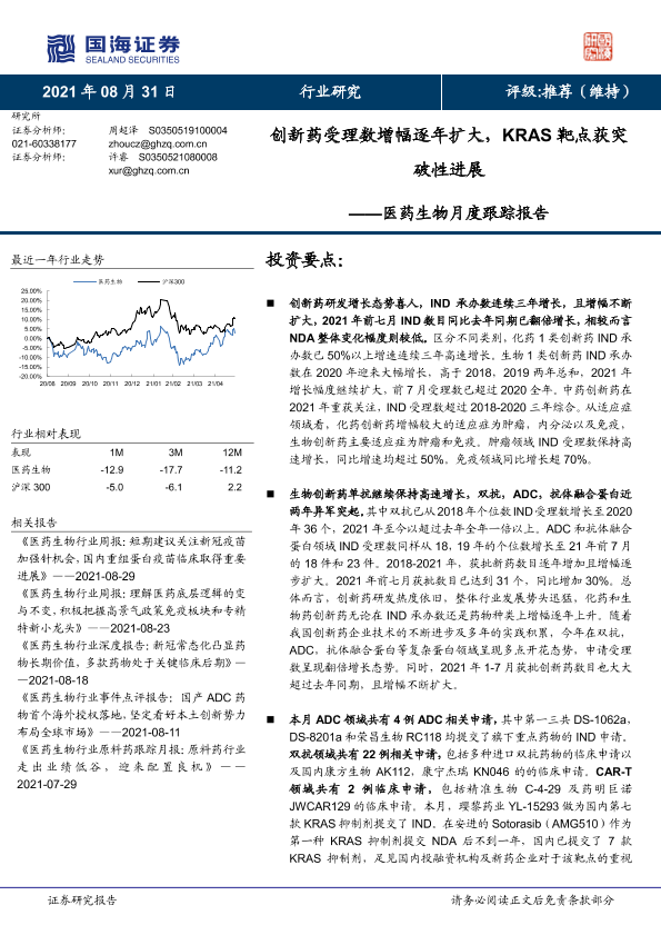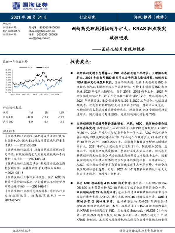 【国海证券】【20210831】医药生物行业月度跟踪报告:创新药受理数增幅逐年扩大,KRAS靶点获突破性进展-29页