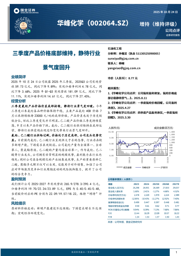 【国金证券】【202510】三季度产品价格底部维持,静待行业景气度回升-4页