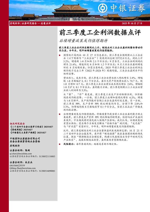 【中银证券】【202510】前三季度工企利润数据点评-6页