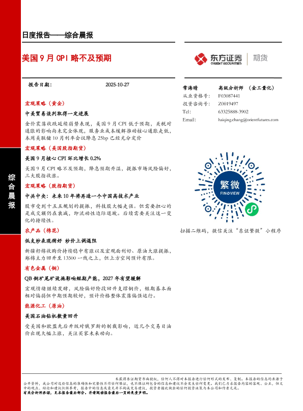 【东证期货】【202510】日度报告——综合晨报-20页