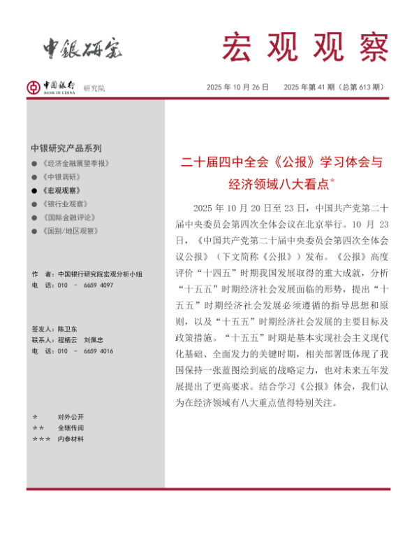 【中国银行研究院宏观分析小组】【202510】二十届四中全会《公报》学习体会与经济领域八大看点-13页