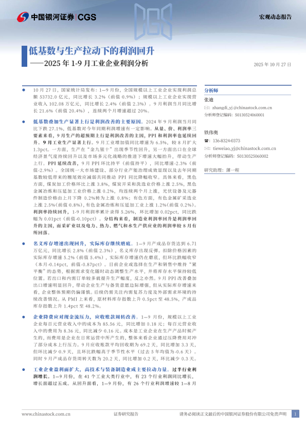 【银河证券】【2025】低基数与生产拉动下的利润回升——2025年 1-9月工业企业利润分析-5页