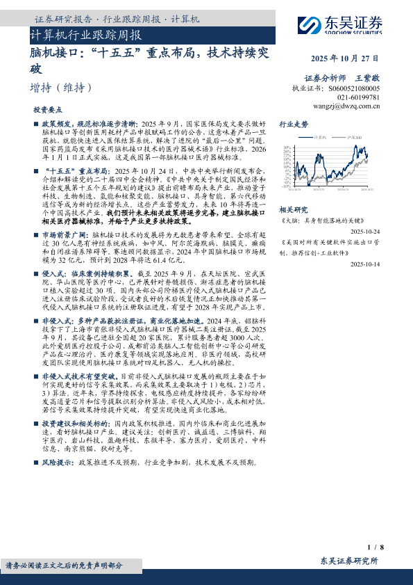【东吴证券】【202510】脑机接口:“十五五”重点布局,技术持续突破-8页