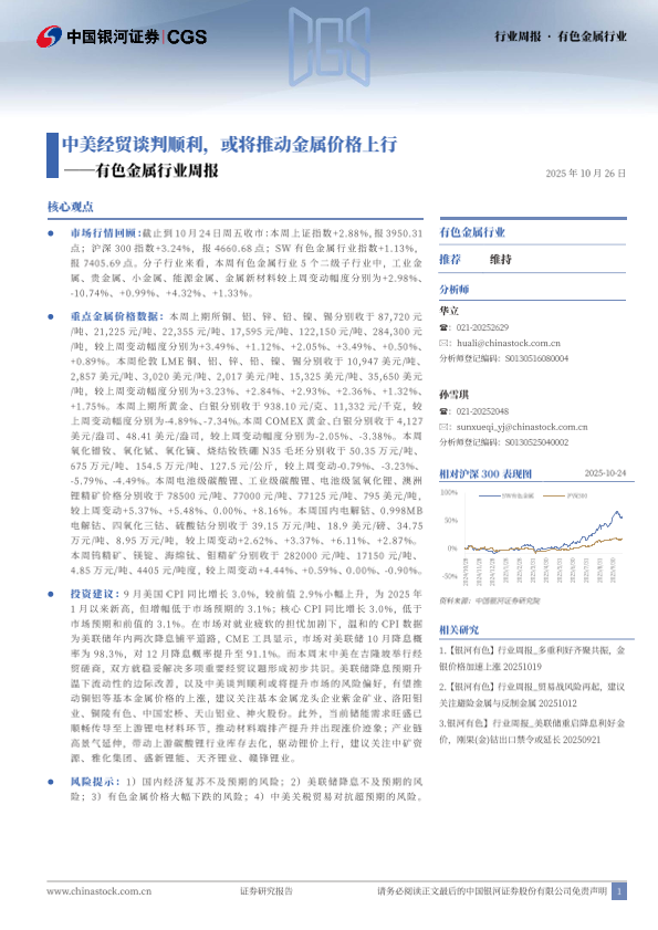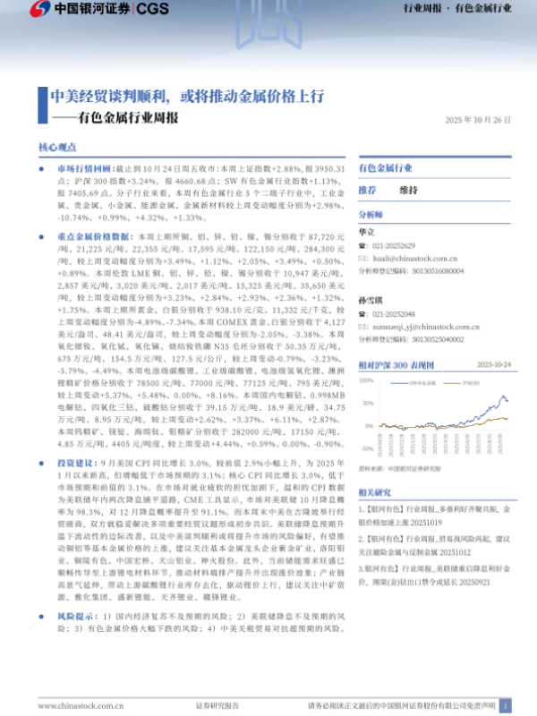 【银河证券】【202510】中美经贸谈判顺利,或将推动金属价格上行一有色金属行业周报-21页