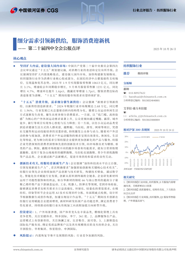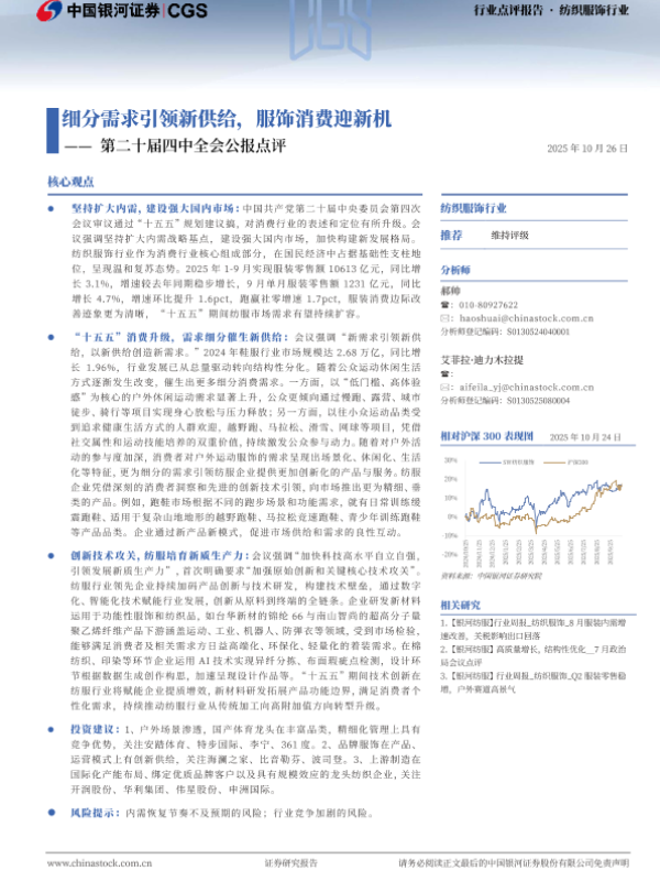 【银河证券】【202510】细分需求引领新供给,服饰消费迎新机——第二十届四中全会公报点评-2页