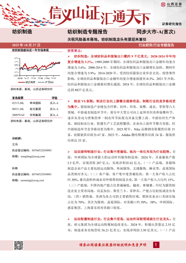 【山西证券】【202510】关税风险基本落地,纺织制造龙头有望迎来重估-28页
