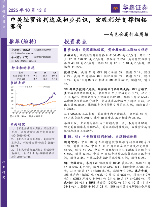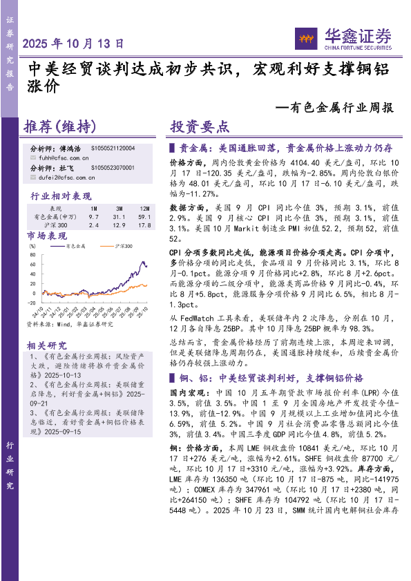 【华鑫证券】【202510】中美经贸谈判达成初步共识,宏观利好支撑铜铝 涨价-19页