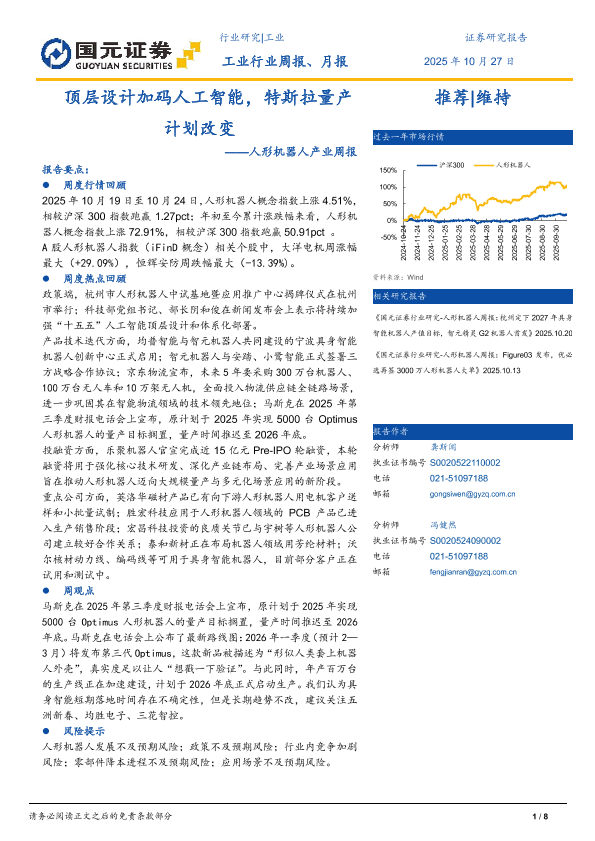 【国元证券】【202510】设计加码人工智能,特斯拉量产 计划改变——人形机器人产业周报-8页