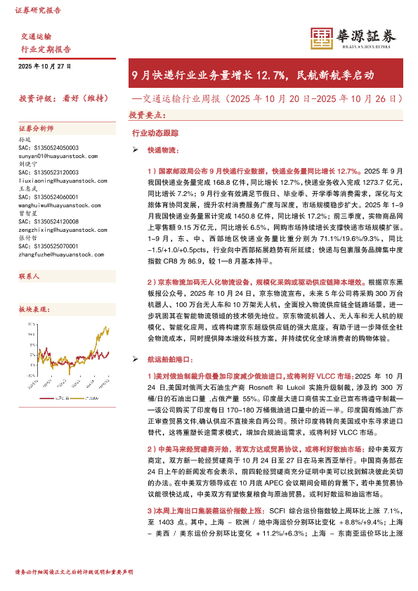 【华源证券】【202510】交通运输行业周报(2025年 10月 20日-2025年 10月 26日)-17页