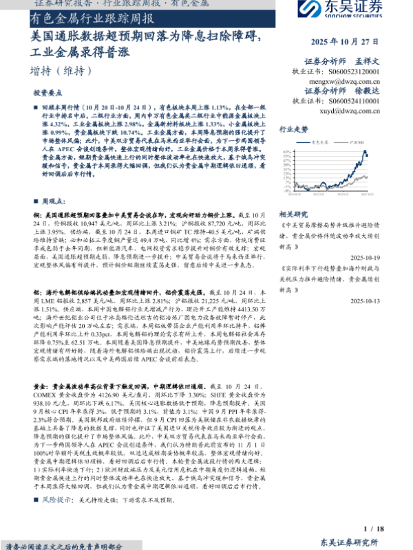 【东吴证券】【202510】美国通胀数据超预期回落为降息扫除障碍,工业金属录得普涨-18页